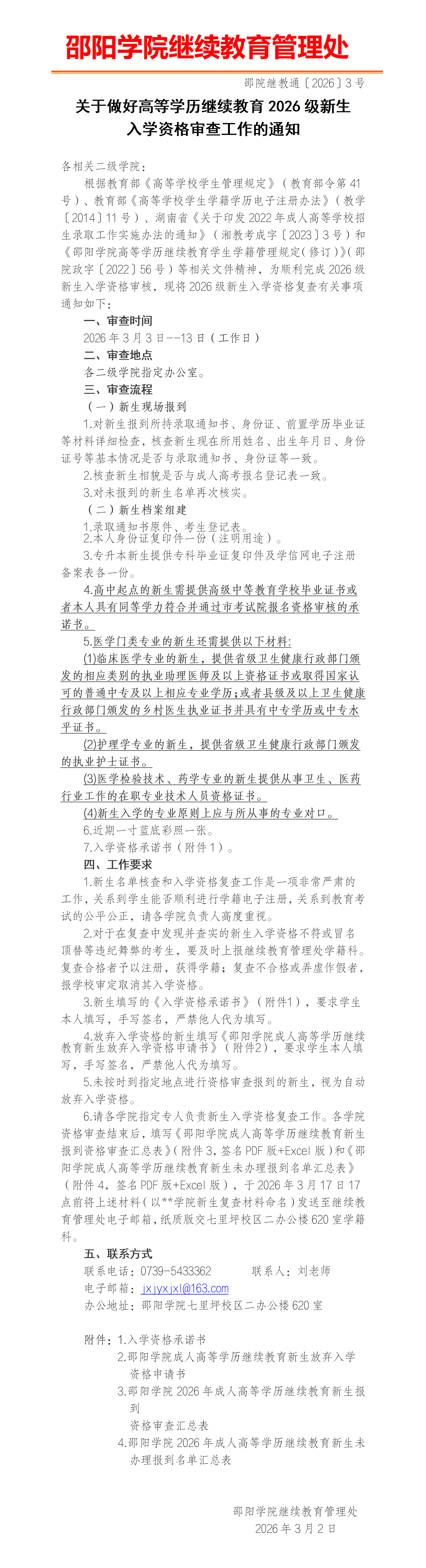 关于做好高等学历继续教育2026级新生入学资格审查工作的通知