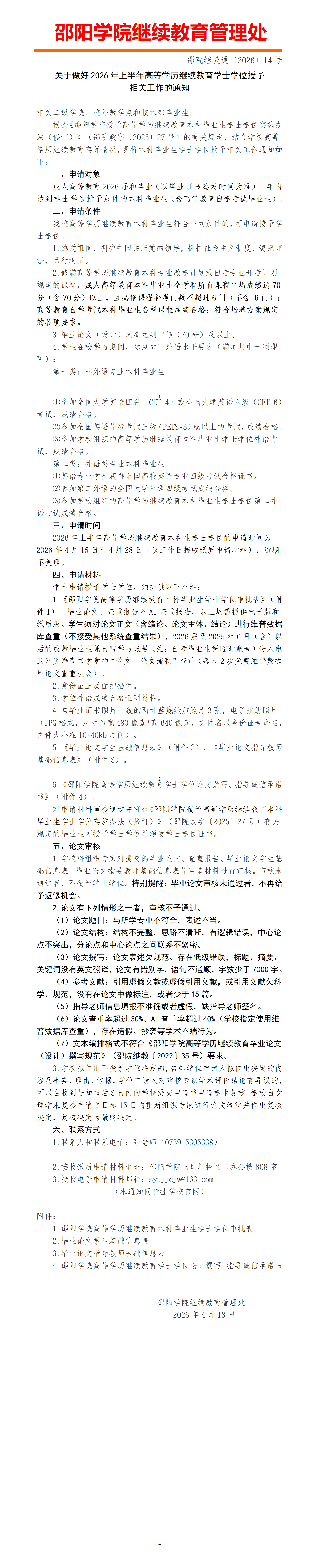 关于做好2026年上半年高等学历继续教育学士学位授予相关工作的通知
