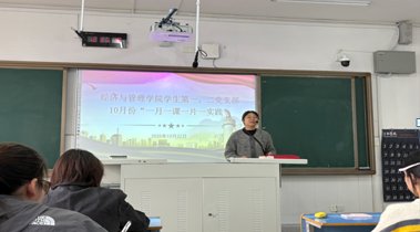 2025年10月22日,经济与管理学院学生第一、二党支部在明德楼南栋613教室顺利召开10月份的“一月一课一片一实践”,会议由学生第一党支部书记何洋洋主持。